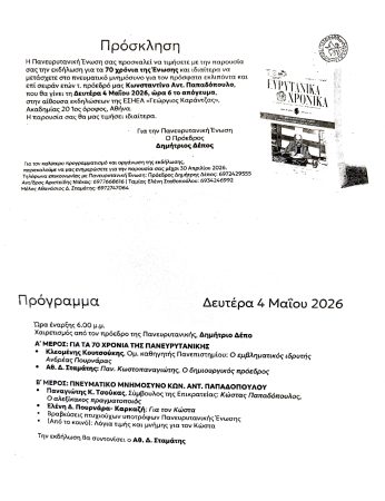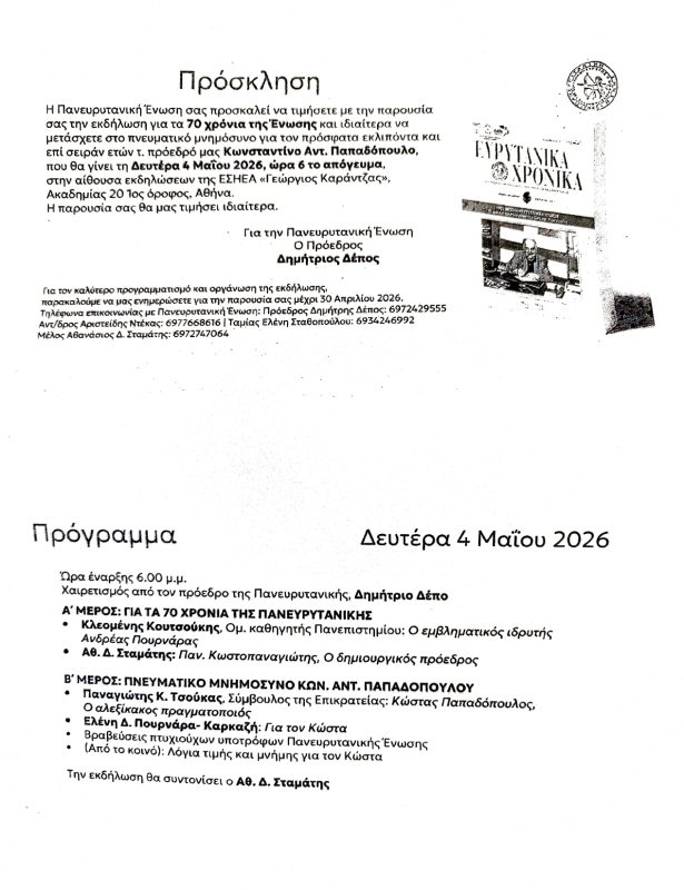 Εκδήλωση προς τιμήν του Κώστα Παπαδόπουλου (πρόσκληση)