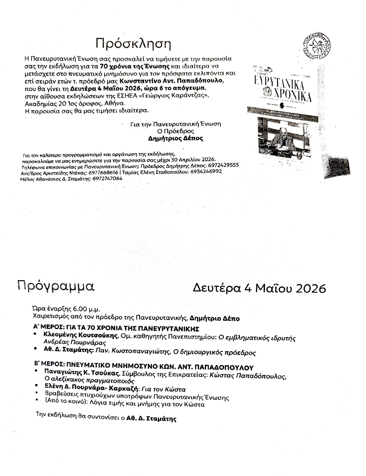 83η Επέτειος από την έναρξη του Ένοπλου Απελευθερωτικού Αγώνα της Εθνικης Αντίστασης 1941-1944 / ΠΡΟΣΚΛΗΣΗ